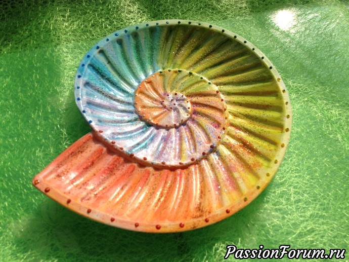 Как радуга получилась на тарелочке)Красивая ракушка!