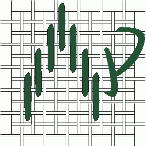 В классической версии барджелло используется прямой вертикальный стежок, который выполняется сверху-вниз, слева-направо через 4 нити канвы. Однако, современная вышивка не лимитирует длину стежка, которая также как ширина и количество ступеней задается в первом ряду (все последующие ряды идентичны первому).