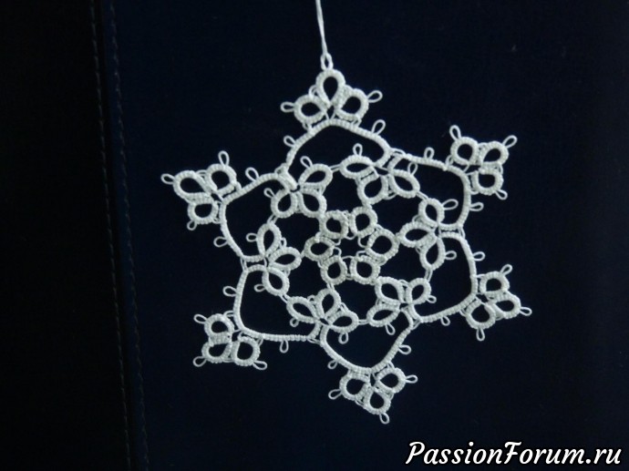 Хочу дополнить топик Ирины ( Ирина Меремьянина (Ирина) в котором Она упрекала нас, что фриволите обходим . Ирина, Дорогая, не обходим, - уже готовимся к Новому Году и хочу представить свой "отчет" за неделею. У этих снежинок диаметр- 8-9,5 см . Использовалась нитка Альтин Басак. Cхемы из книги Lene Bjorn 24 Snowflakes in Tatting (интернет). Пока не распределилась, - останется они снежинками или буду ими елечные шары "одевать". Но такая работа очень хорошо настраивает ! Приглашаю и других присоединиться !