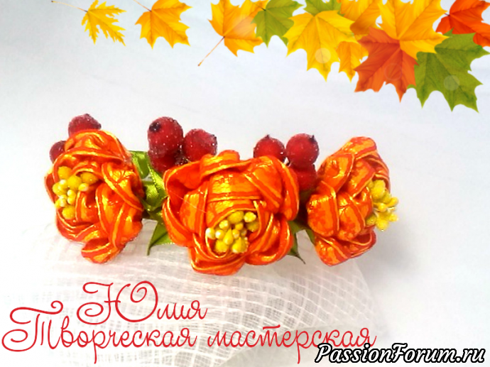 Осенний ободок с необычными цветами канзаши