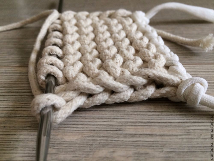 Отдельно скажу про лен. У меня пряжа 500 м в 100 г. Чтобы льняная ниточка равнялась примерно по толщине шнуру, я взяла нить в 5 сложений.