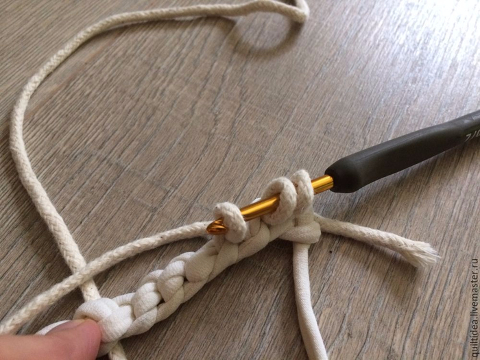 Из бросовой нити набираем крючком цепочку из 10-12 воздушных петель.