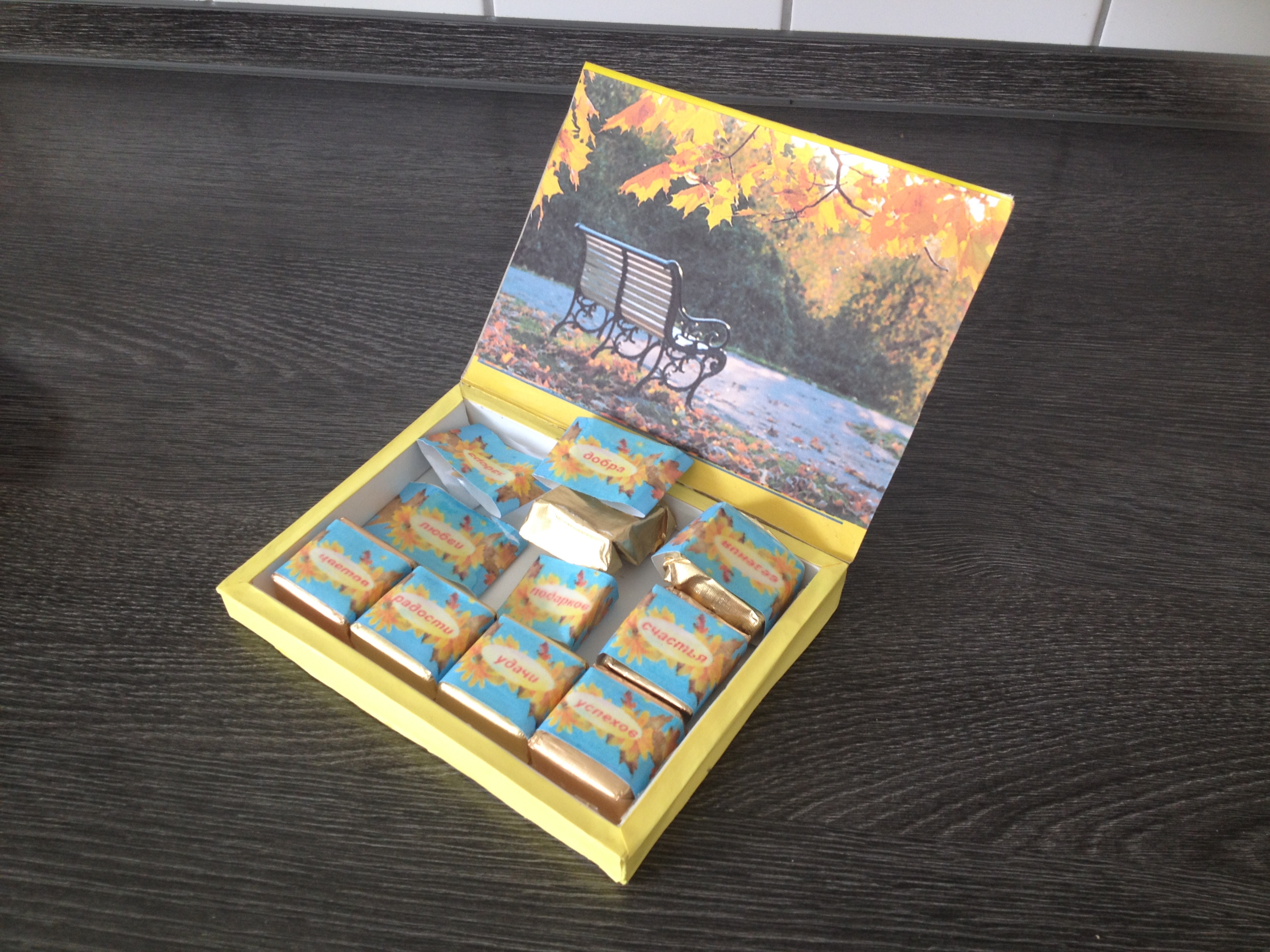 Валентина, красивый поднос получился, у меня такая же заготовка есть, теперь обязательно начну ей заниматься, а то все откладывала.И коробка с конфетами, так мило получилось, очень приятно получить такой подарок.
