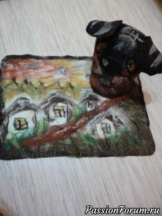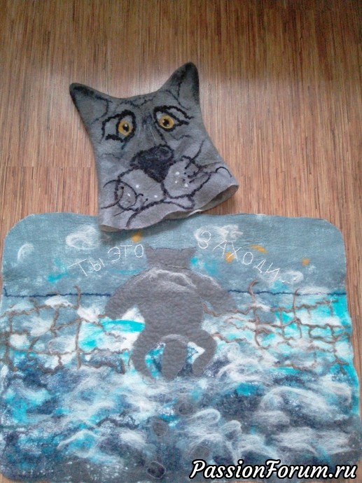 Здравствуйте, дорогие подружки.Накопилось остатков шерсти, и решилась я на их утилизацию.Для бани валяла уже пару шапок раньше, поэтому решила для сына подарок сделать.Разыгралась моя фантазия и получилось два комплекта. Внутрь ковриков положила марлю, понравилось..Как водится, если подарок есть, быстро найдётся человек, которому он будет подарен.Ну...и букетик...в тему...и повод был...но это другая история..Так теперь волк и пёс в баню вместе ходить будут...