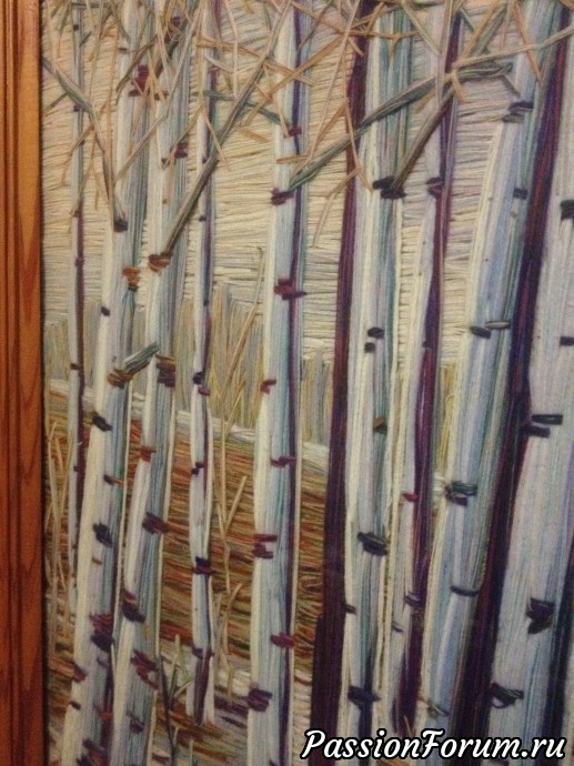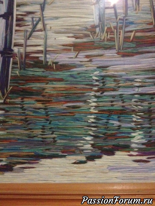 А в конце 90-х сменилось руководство в этом месте и новое руководство решило что библиотека не нужна и попросило освободить помещение, книги отправили в подвал , а эту картину за ненадобностью решили выбросить. Мне повезло, что в тот момент, когда её в разбитой раме несли на помойку я оказалась там и попросила разрешение забрать её. Только взяв её в руки я увидела что она не написана маслом, а вышита, и меня поразила техника в которой она была сделана.