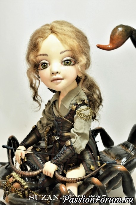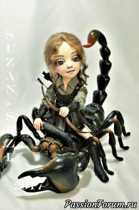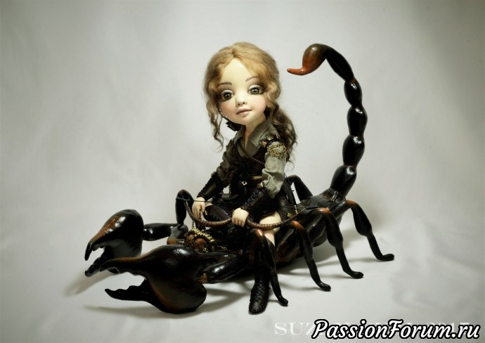 Прочитала в комментариях, что это текстильная кукла? Невероятно! Думала фарфоровая! А скорпион тоже текстильный? Это просто божественно, такое мог сотворить только Творец!