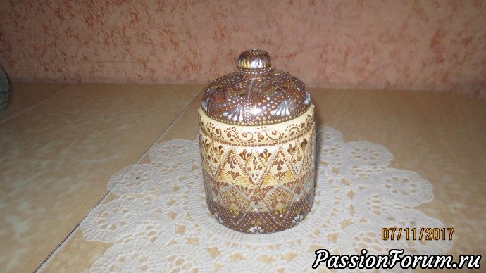 Баночка для чая керамическая,уж очень бледненькая была.Вот я её и оформила.
