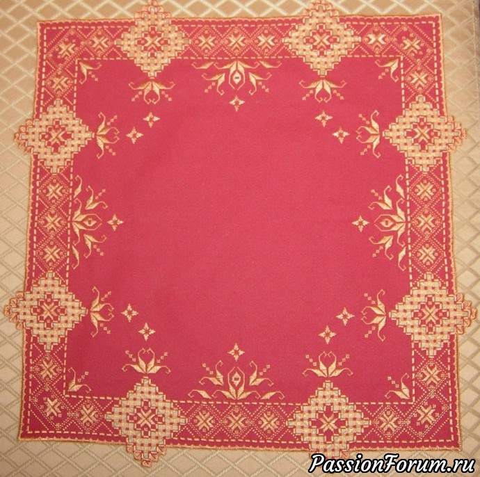 Уже давно я хотела сделать для новогоднего и рождественского стола праздничную салфетку — именно красного цвета с золотой вышивкой!!!