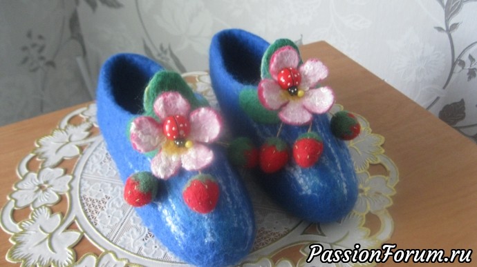 Прелестные тапочки))) Видно, что хорошего качества.Молодец, Татьяна))А чем подшиваешь?