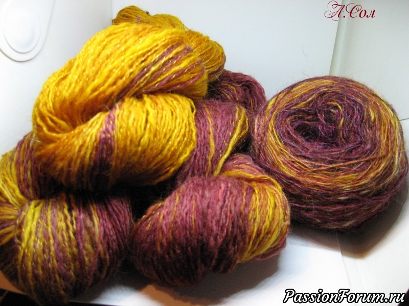 В этот раз соединила шерсть с вискозной ниткой и получилась пряжа с шелковым блеском.