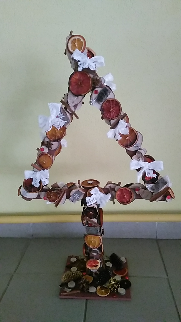 Какая необычная ёлочка! Девочки — молодчинки — изобретательные рукодельницы! Представляю, как приятно она пахнет — сухофрукты и пряности м-м-м!