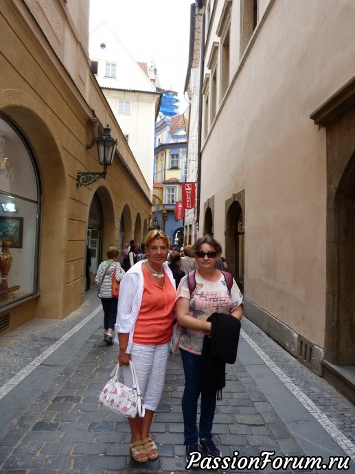 И, наконец, оказываемся на одной из интереснейших площадей Праги - Староместской площади. Это фотография сделана, как бы, напротив самой площади. Мне очень хотелось сделать фотографию на фоне дома с черно-белой росписью.