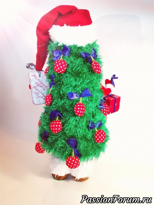 Представляю свою работу - Девочка-Елочка. Милая Новогодняя красавица выполнена в смешанной технике. Головка сшита из хлопка, выполнена утяжка лица. Личико расписано акриловыми красками, сухой пастелью, закреплено лаком. Тело связано из ниток "травка". Вся такая мягонькая, приятно "тискательная", "обнимательная". Ручки на проволочном каркасе, могут принимать любое положение. Ножки обуты в сапожки из фетра с искусственным мехом. Внутри сапожки из папье маше, залиты гипсом. Благодаря этому, куколка устойчива и приятно тяжеленькая.