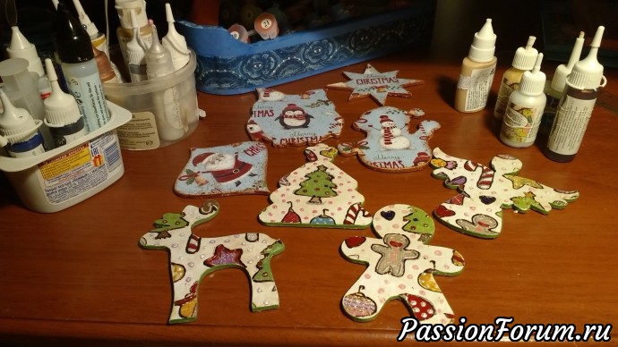 Эти игрушки по своей форме почему-то напомнили мне леденцы. Оттого и ленточки для украшения подобрались такой расцветки