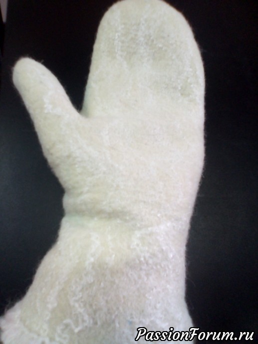Купила я в черную пятницу на ЯМ карачаевскую шерсть 21 кмр и 19 мкр у Айшат. Замечательная оказалась шерстка. Без запаха, мягкая, без остевого волоса. Руки зачесались протестировать в деле. Сваляла варежки из шерсти 21 мкр. Раскладывала ёлочкой как всегда в 4 тонюсеньких слоя, прям прозрачные слои. Потом хороший слой бамбука и вискозы. В этот раз манжет немного длиннее сделала. После сушки обшила турецким мохером. Очень уж он мне нравится. В итоге варежки получились мягонькие, пластичные.