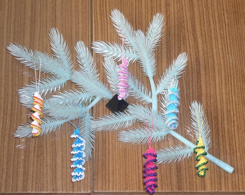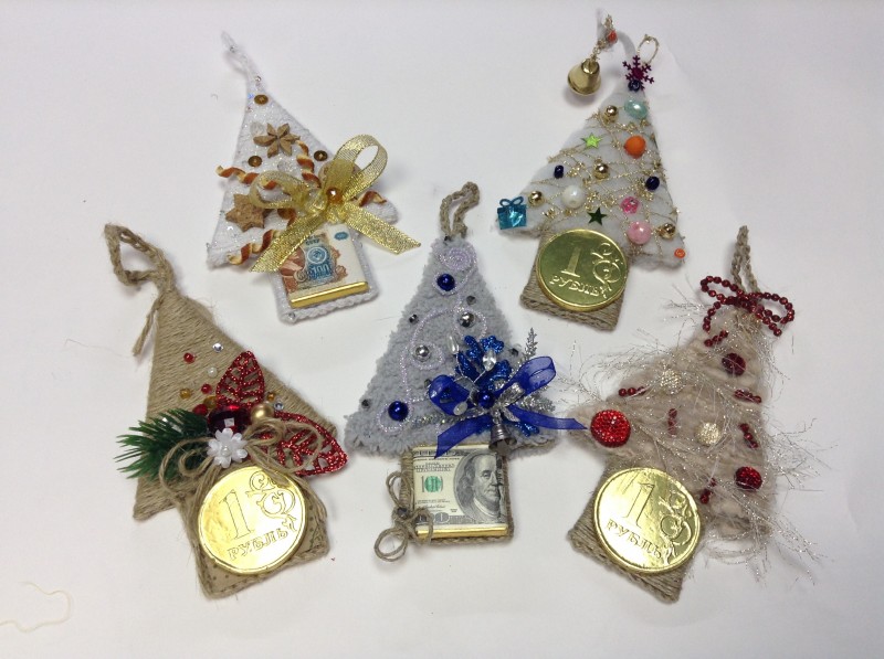 А вот наши с внуками елочки(делали для класса и на подарки):