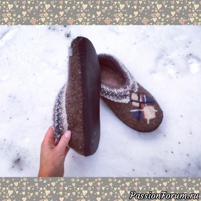 Добрый день, закончила на днях валять тапочки мужу и дочке. Первый раз пробовала подшивать подошву из микропорки, получилось. С каждой работой все ближе и ближе к заветной мечте валянию ботинок и сапог.