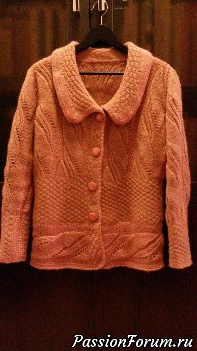 Девочки, выставляла я топик с переделками жилета и жакета. Жакет мне не очень нравился, был коротковат. И вы меня в этом поддержали) И набросали мне с ходу кучку идей по доработке жакета. Все сошлись на том, что надо его удлинить. Особенно мне понравилась идея Галочки (Алины) - удлинить жакет поперечной полосой с косой основного узора. Я подошла очень ответственно к подбору пряжи для надставки и обвязки, составив нить из трех разного цвета - рыжий, лосось и беж. Потому как точно такого же не смогла найти нигде. Распустила всю предыдущую обвязку и начала сначала) И результат мне очень понравился)