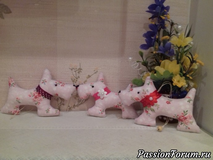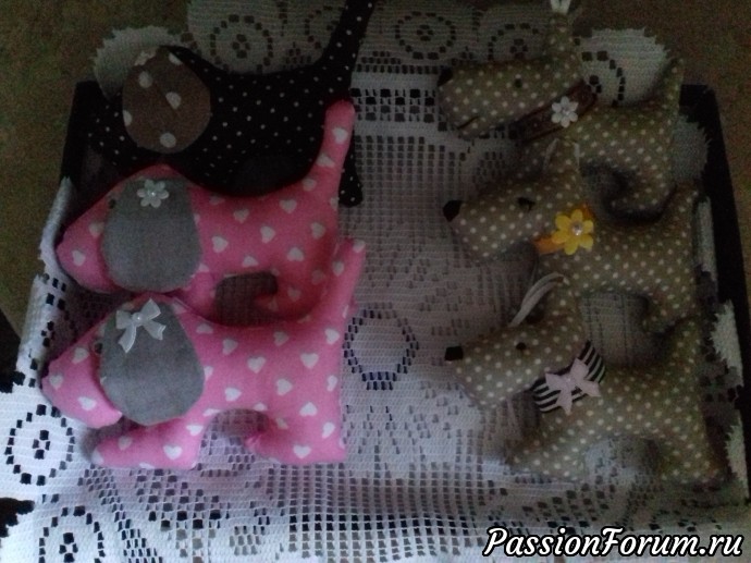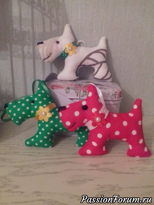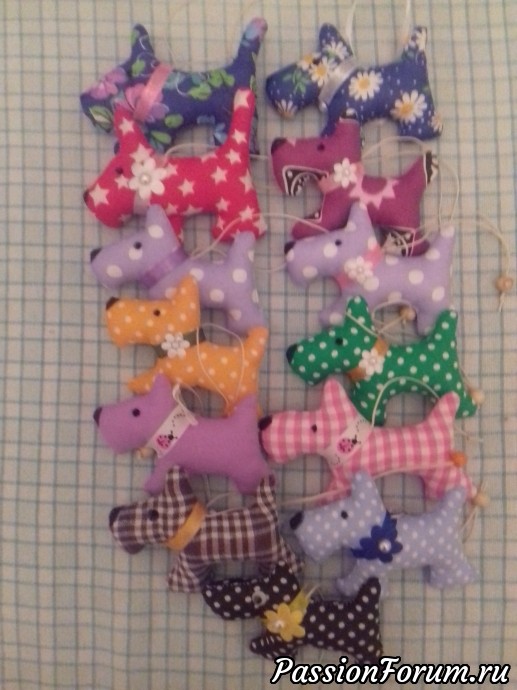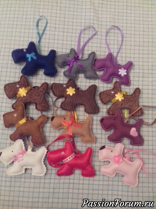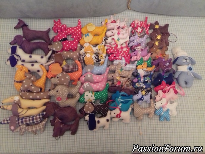 Доброй ночи! Так как наступающий год - год Собаки, я сшила около 100 собачек разного размера и разной породы. Тем более, что помня, как в прошлом году не всем моим покупателям хватило петухов (их было 55).