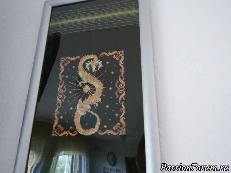 На самом деле меня очень напрягала ситуация выключенного телевизора на большой стене (ну не Малевич я!) и я маниакально искала картины на "мою" тематику удлинённого формата. Искала долго, даже пыталась заказать, но... И вдруг Наташа с лёгкой руки присылает мне две шикарные вышивки! Размер был не очень подходящий, но сами вышивки и их исполнение - просто шедеврально! Выход из положения нашёлся: я подшила их не ткань и вставила в нужные мне рамки. Класс!