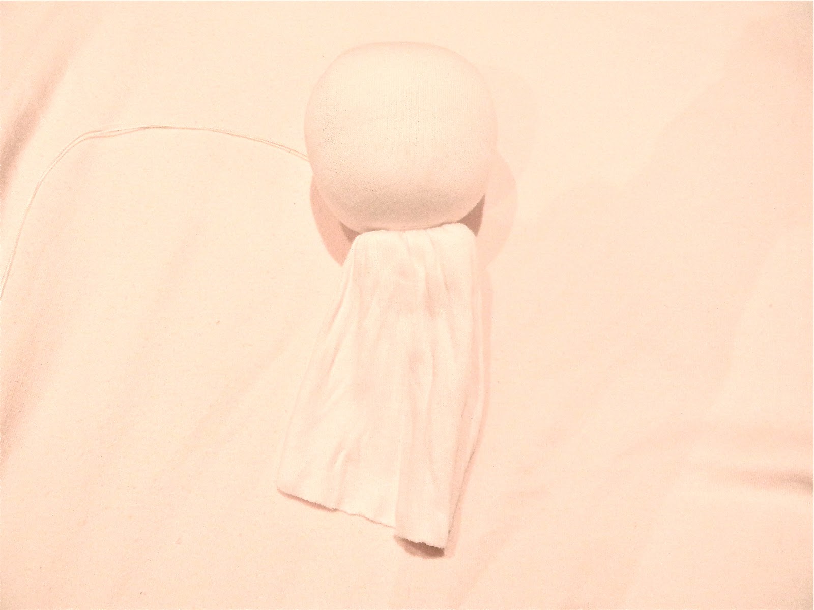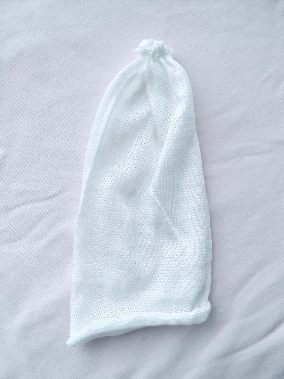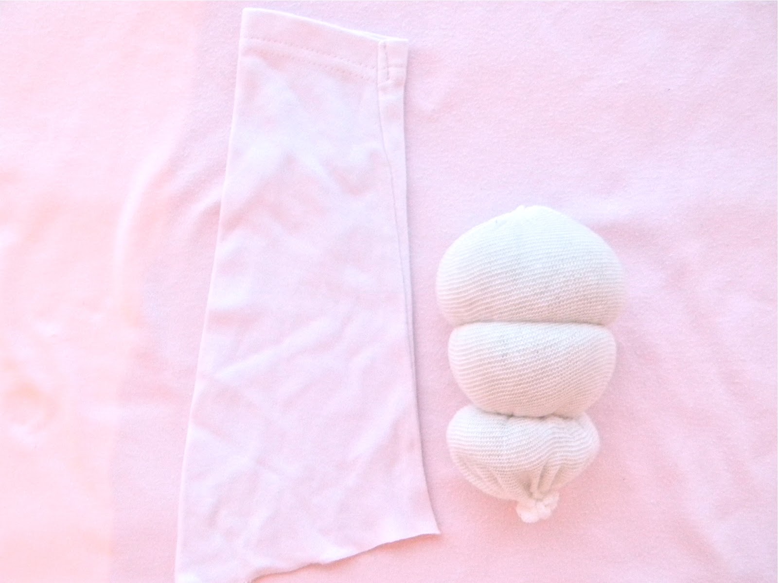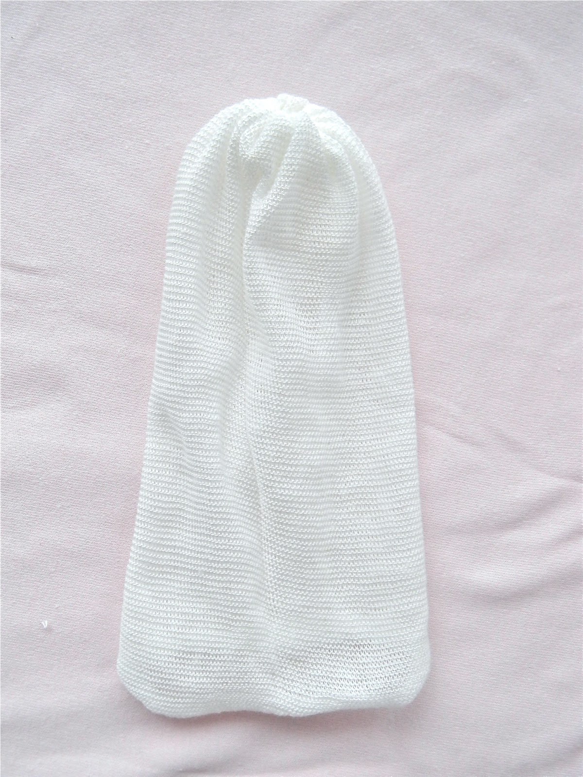 Дальше берем внутренний чехол головы. У нас это бинт Штюльпа, у вас это может быть часть детской колготки или рукава кофточки.
