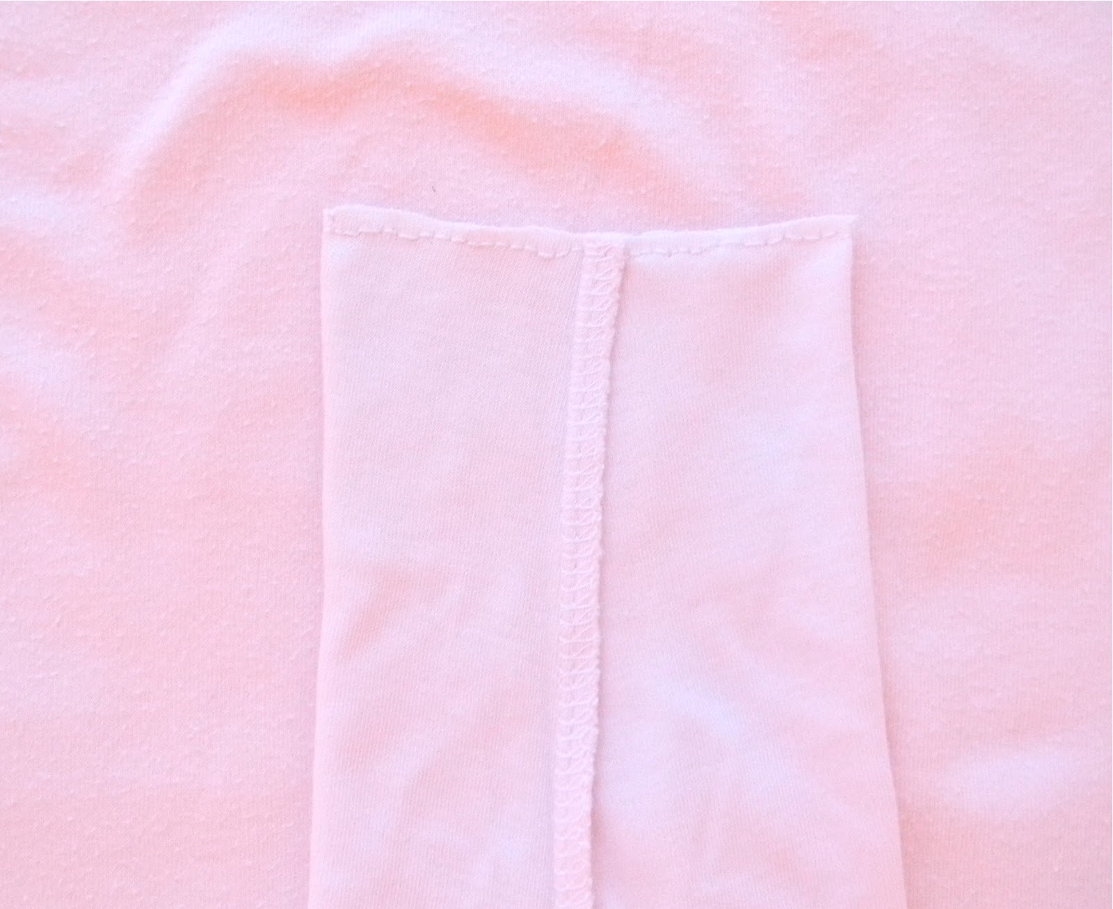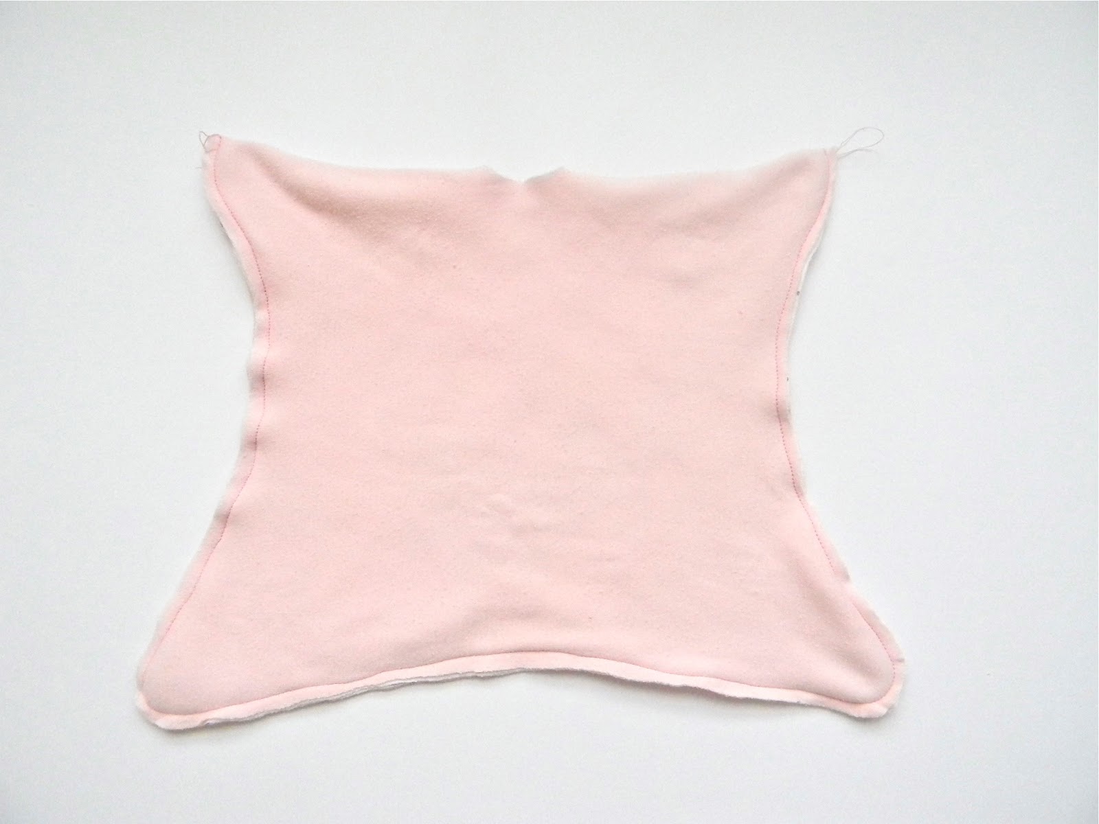 Далее берем «кожу» куколки — у нас это трикотажный рукав кофты нежно-розового цвета. Выворачиваем рукав наизнанку, зашиваем верхний край.
