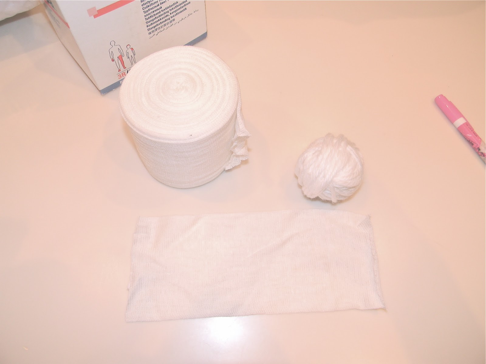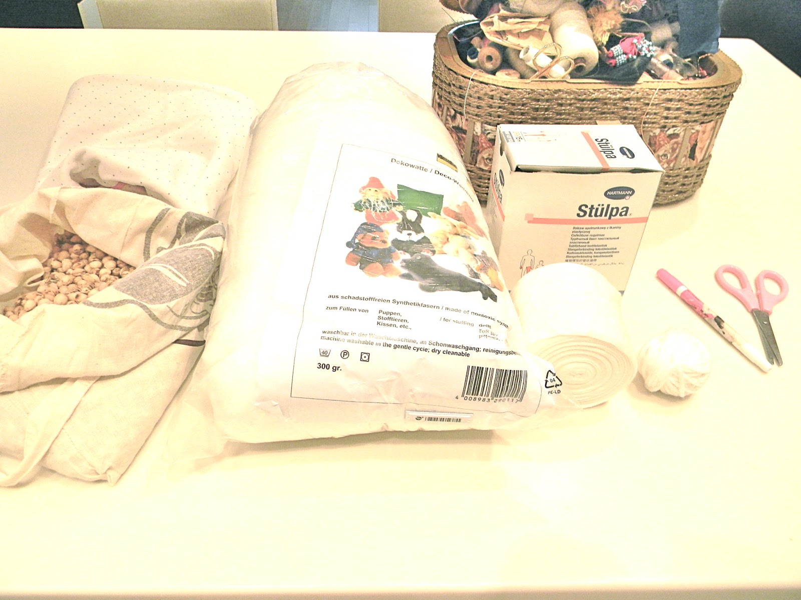 - Светлая ткань для внутреннего чехла головы (у нас бинт Штюльпа, вы можете взять рукав детской кофты или колготок)