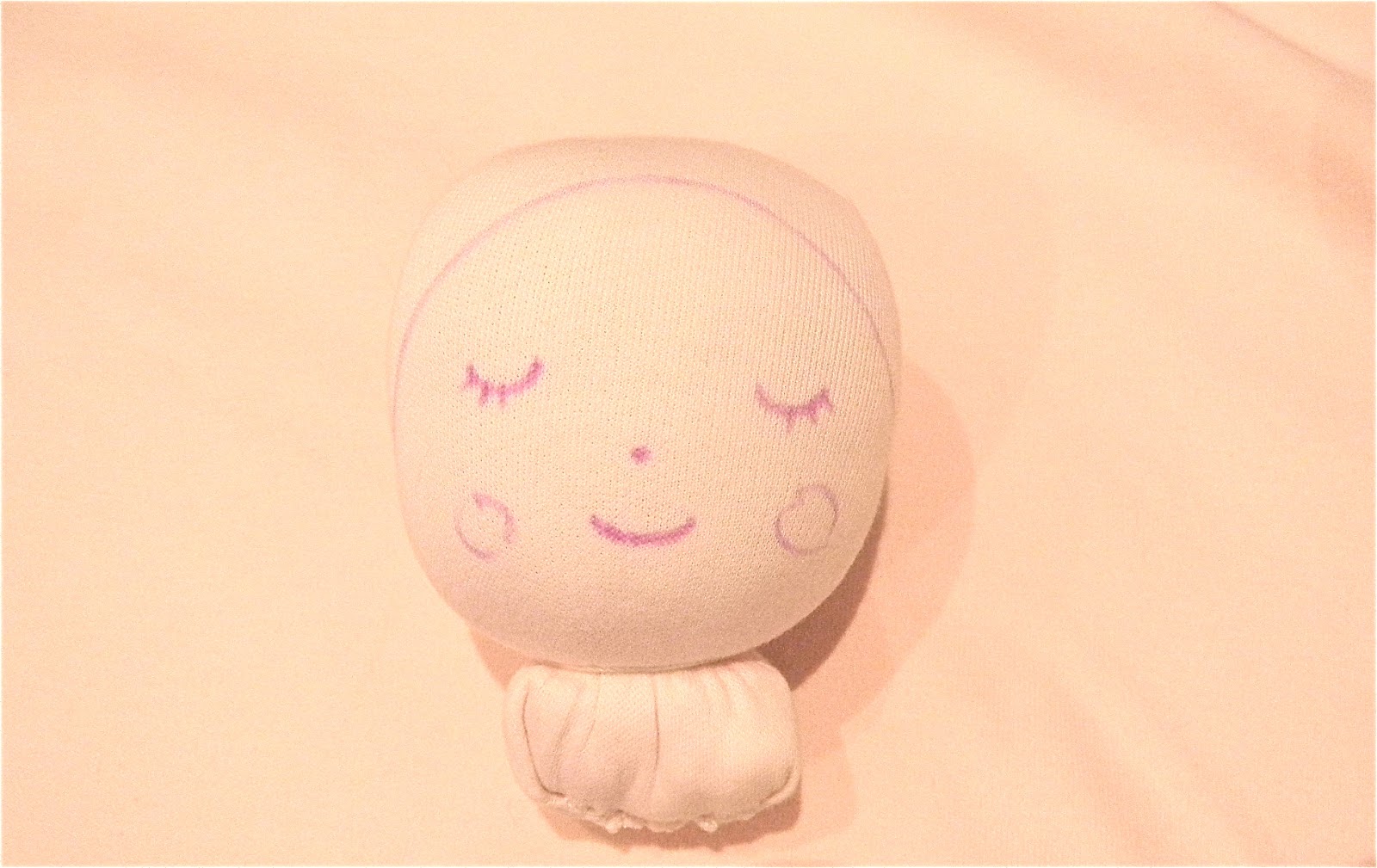 Теперь отмечаем смывающимся фломастером черты лица. На этом же этапе можно выкроить и сшить колпачок. Примеряем его на голову и отмечаем место на голове, где будет край колпачка.