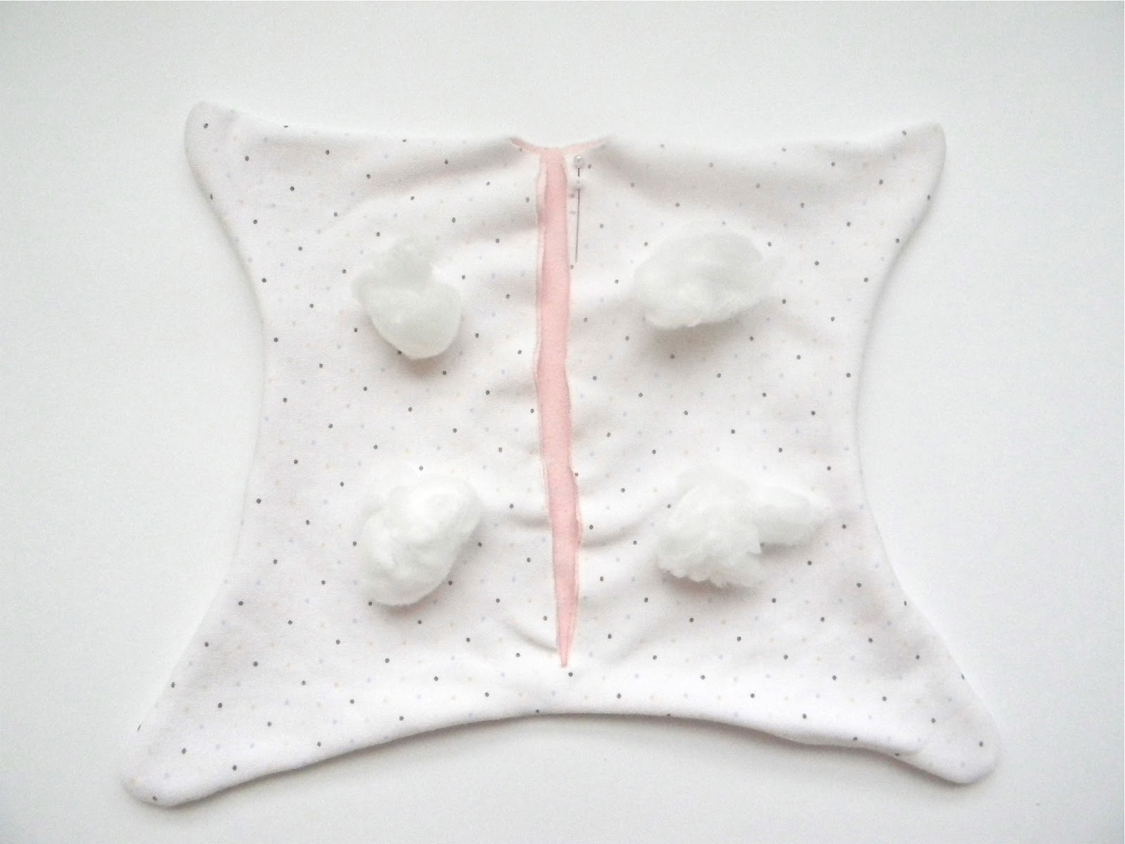Далее от горловины вниз разрезаем ткань настолько, чтобы можно было засунуть туда чехол с косточками. По краям мы потом пришьем липучки (вы можете пришить пуговицы или молнию, как вам удобнее)