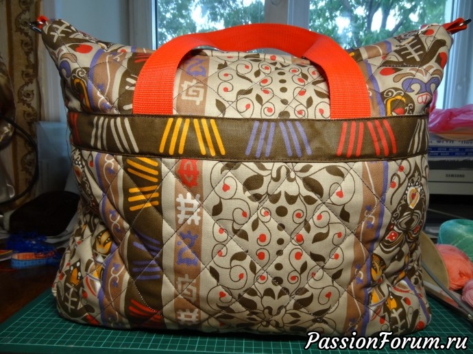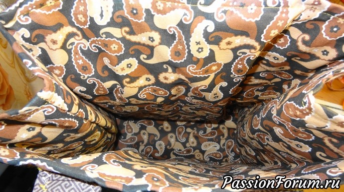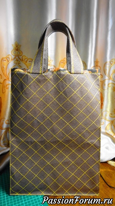 Дно я укрепила изолоном в два слоя, он очень легкий и хорошо держит дно, а бока пакета прострочены, надеюсь что после выемки продуктов, он будет принимать стройную форму…
