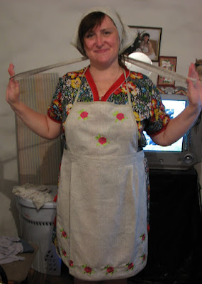 Ну а это был подарок на заказ - это красивый фартук и косынка комплект из льняной ткани, мой помощник на кухне в нашем храме, где я в свободное от работы время работаю.