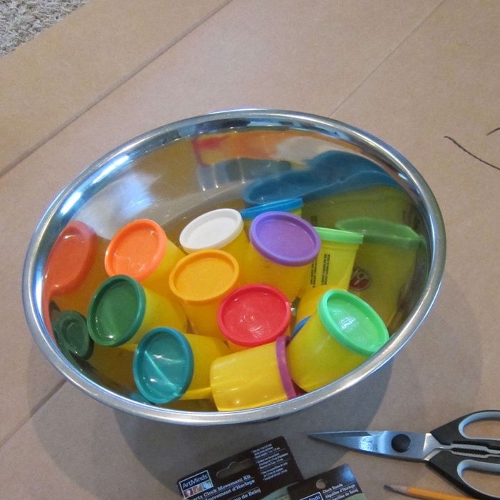- 12 пластиковых разноцветных крышечек от пластилина, витаминов и т.д.