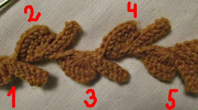 Смотрим на фото: элементы 1,3,5-просто поворачиваем в противоположную сторону. В таком виде кайму можно нашить по краю, либо сделать из неё аппликацию ''ВЕТОЧКА''