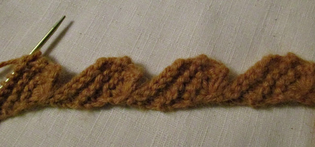 Теперь свяжем ракушки-мотивы в зеркалике. Для этого надо связать на 1 ряд больше. А именно:2,3,4,5,6 и 7 ряды вязать лицевыми. То есть раппорт узора будет не из 6 рядов, а из 7-ми.Остальное всё также, как описано выше.