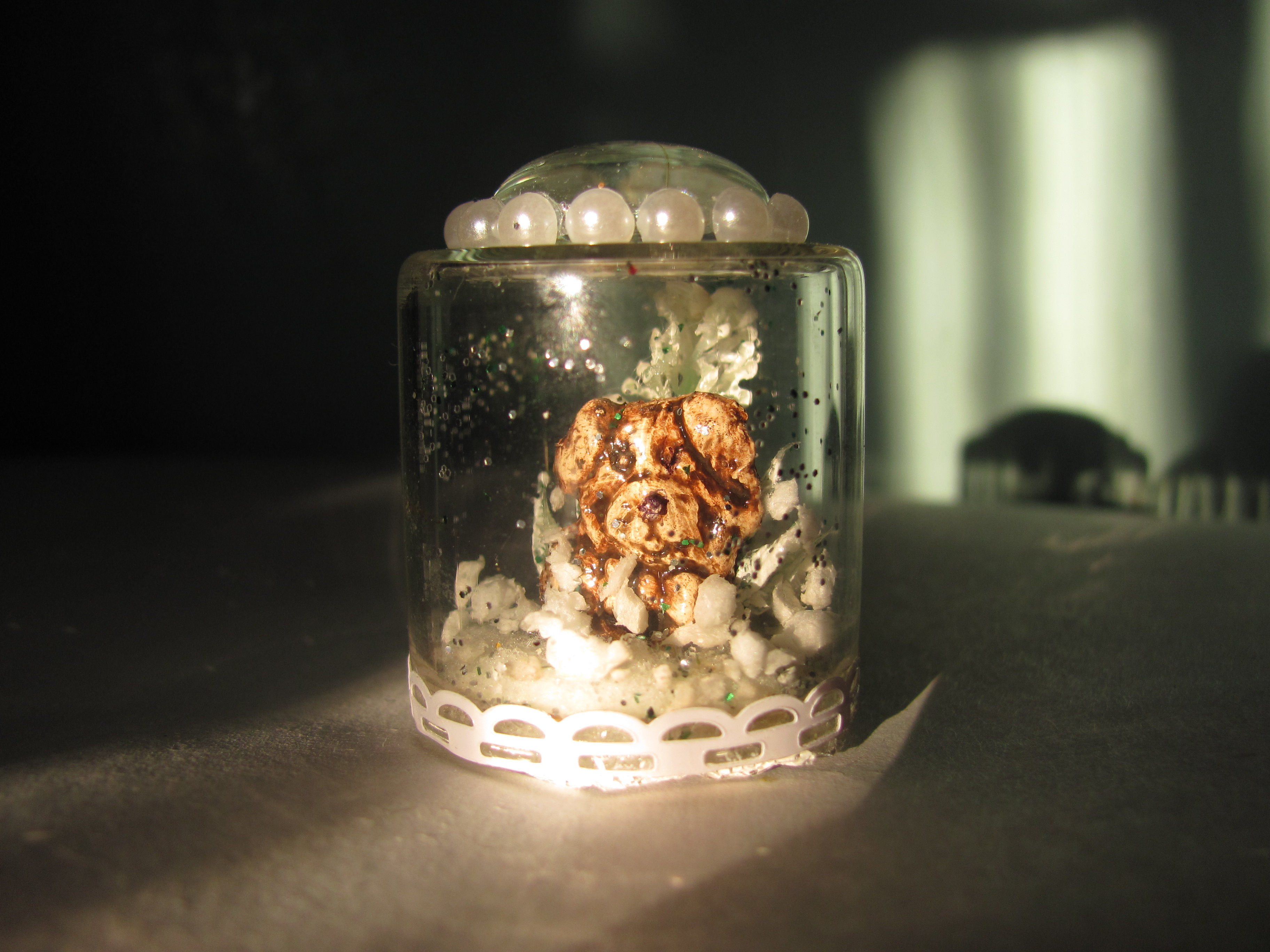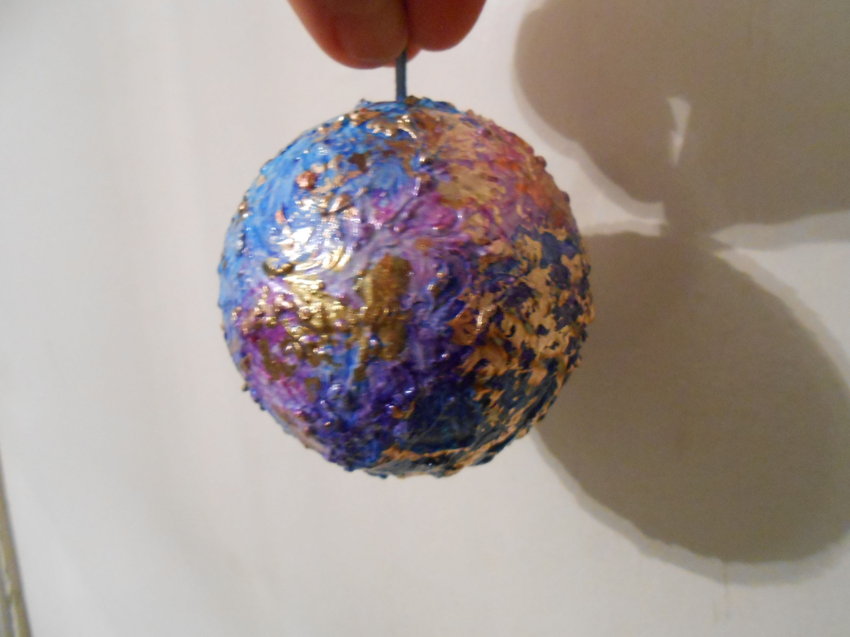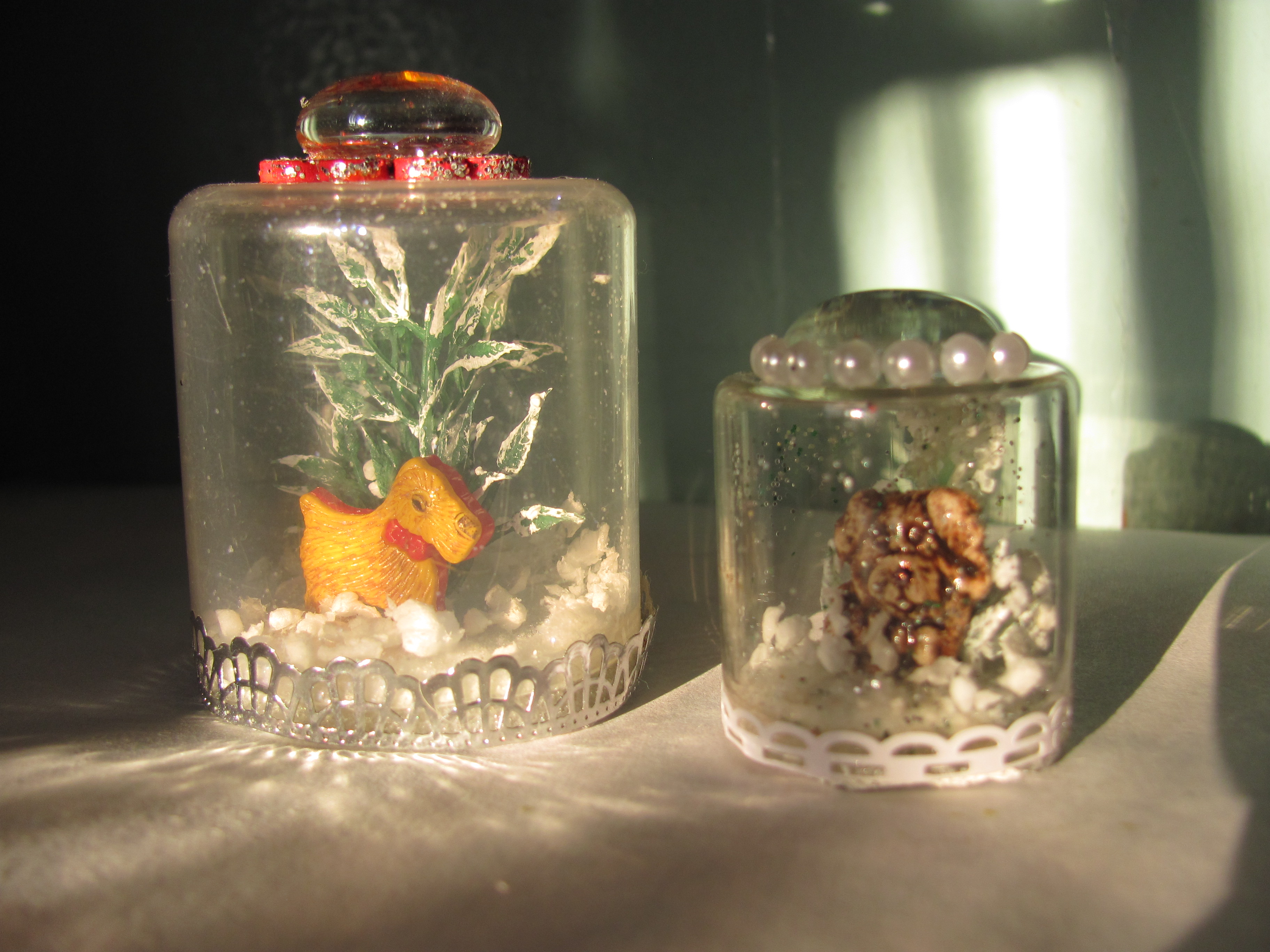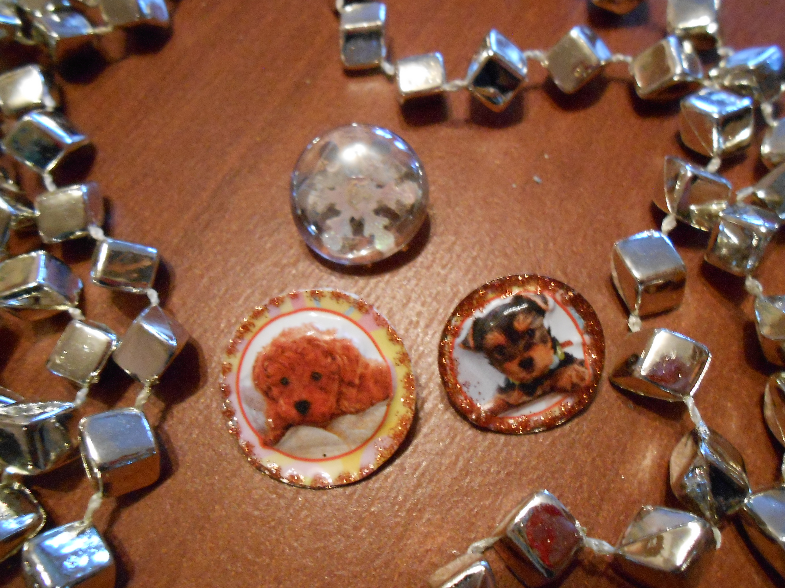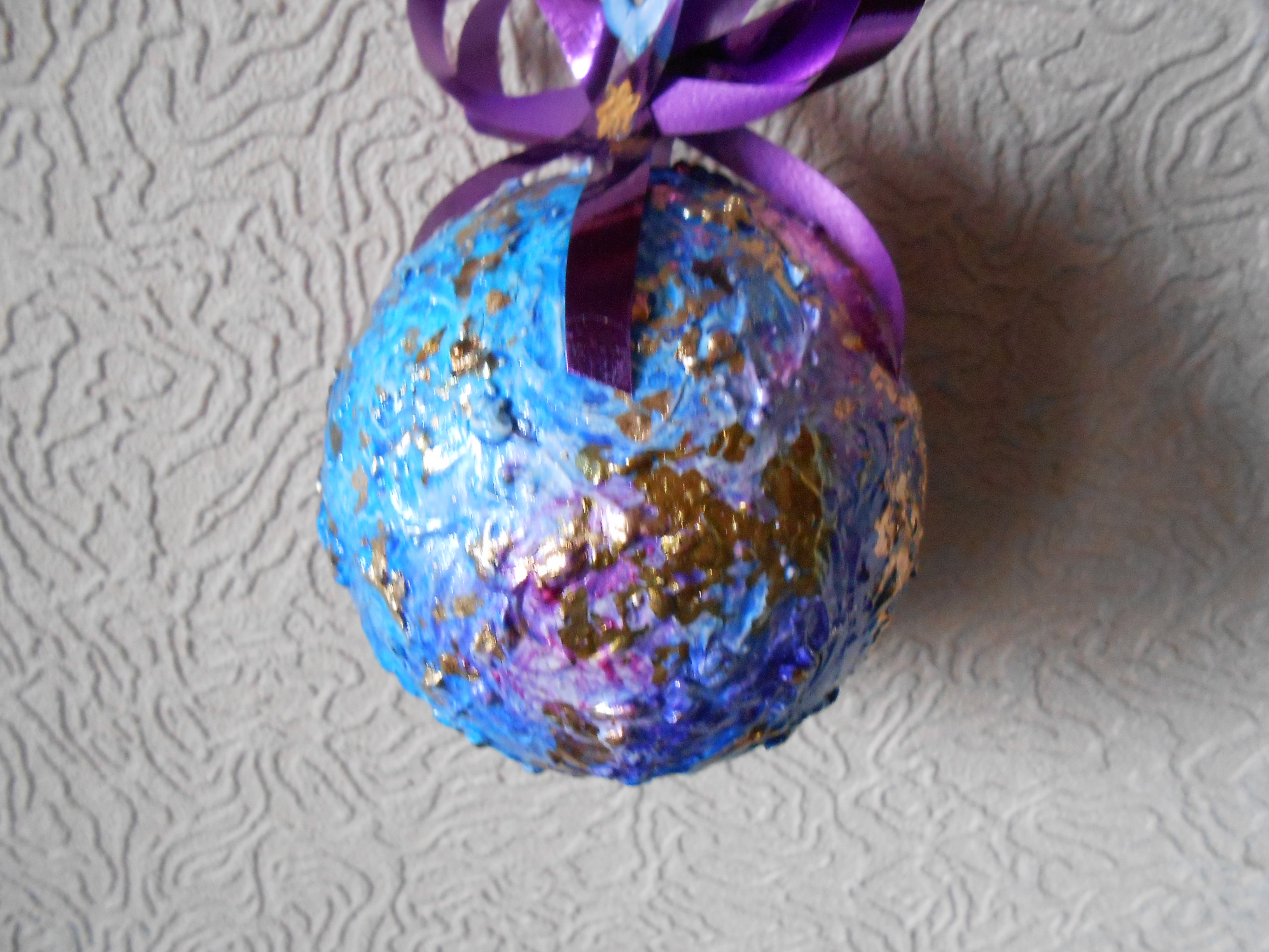 Использовала декупаж,интерферирующую акриловую краску,искусственный снег,полубусины,лак.