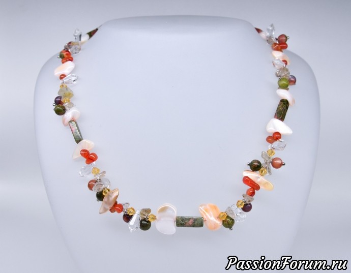 Я собрала ему нитку на шейку из сардониксов в форме палочек. А, поскольку он носил костюм и галстук, это украшение было вполне интимным.