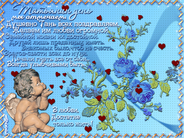 Тани, Танечки, Танюши! Ангелу вашему Золотой венец, а вам долгих лет жизни!))