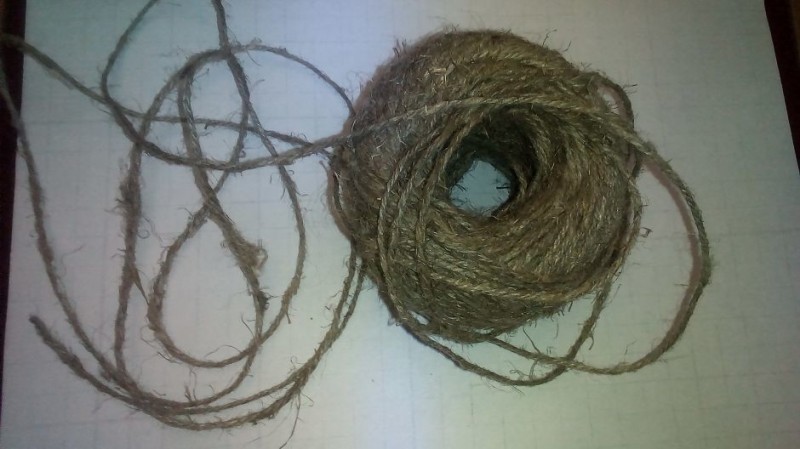 И плюс джут очень мохнатый и местами на нем очень много путанки, и эти места я срезаю. Поэтому через бутылочку с клеем просто не пройдет.И еще джут очень грязный, даже после обработки я очень часто убираю занозы из пальцев