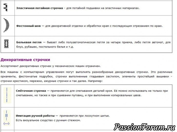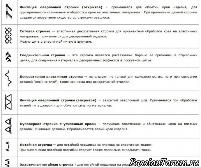 Без визуального восприятия трудно понять, что из себя представляют различные строчки. Давайте попытаемся расшифровать наиболее часто встречающиеся строки, которые есть практически на каждой швейной машинке.
