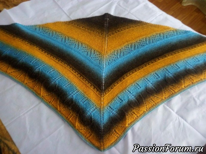 Шаль с первых фото, это моя первая шаль. Мама попросила связать тёплый платок, вот и решила попробовать. Посмотрела в интернете принцип вязания шалей, и начала процесс. Тем более, что пряжа кауни уже лет 5 в закромах лежала. Узоры подбирала сама, в процессе вязания. А теперь остановиться не могу, уже следующая в работе.