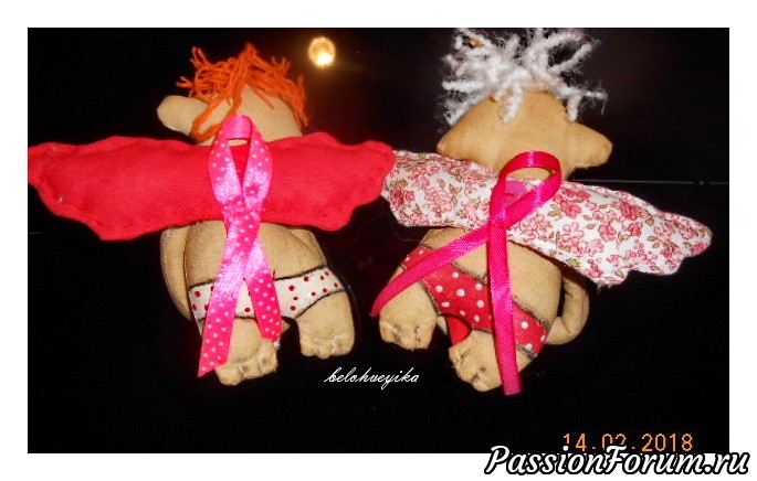 Ангелочки ко дню влюблённых, в технике грунтованный текстиль. Выкройку и Мк взяла в инете. Автора, изините, не запомнила