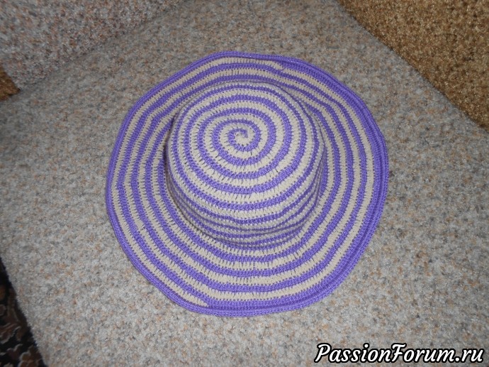 Зимы осталось совсем немного, а там и весна слава Богу, а лето так быстро подскочит, что и не заметишь. Для летнего сезона между делом связала я безрукавый топик и шапчулю лавандового цвета и шляпу спиральку . Чтобы укрепить поля шляпки, я использовала обыкновенную систему медицинскую,отлично держит форму, не надо замачивать в желатине, чтобы придать форму. Да и летом очень часто придется стирать шляпу.