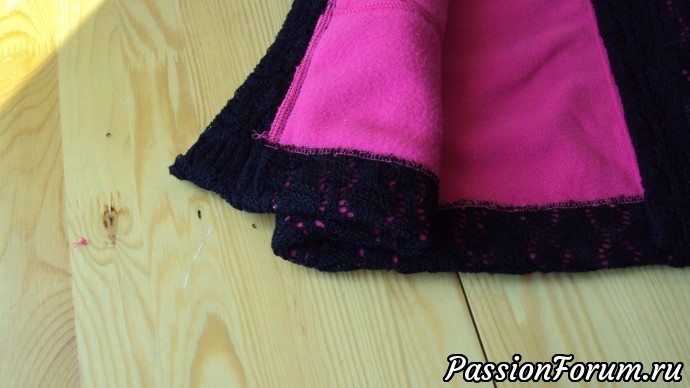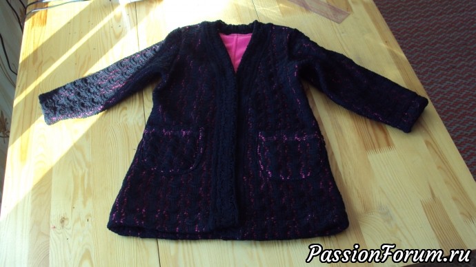 Здравствуйте, девочки - мастерицы. Уже несколько раз я рассказывала о том, что в нашем магазике "Сактон" продают бракованный трикотаж по 50 р. за килограмм. В очередной раз я приобрела такой трикотажик. Решила сшить внучке кардиган для прохладной погоды, размер 116. Сначала все детальки оверлоком пришила к флису, а только потом соединяла между собой, так как трикотаж очень сыплется. Моя сношка очень обрадовалась идее обновки. Однако, когда она увидела результат, несколько разочаровалась. Причина в том, что она представляла себе совсем закрытую кофточку, чтобы грудь была закрыта. Конечно, жаль что мы этот момент не обсудили. Но, теперь это нужно как-то исправить. Думала сшить снуд, но летом они вряд его будут таскать с собой. Может что-то типа кашне, чтобы можно было завязывать на узелок или бант? Сделать петельку сзади, чтобы не выпадал?