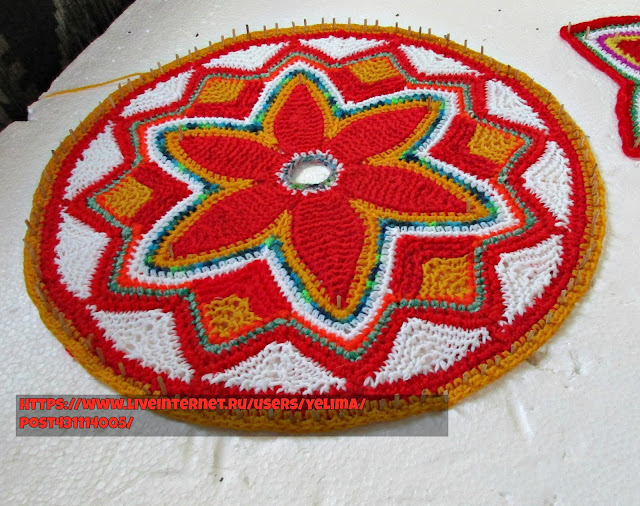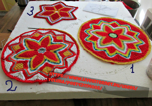 На этом фото мандал N1-совсем высох и принял форму, мандал N2 заполнился белыми звеньями, но пока не натянут, а мандал N3- в стадии разработки: