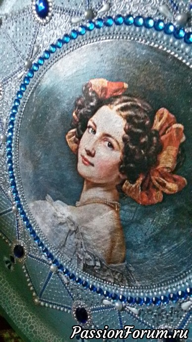 здравствуйте, дорогие форумчанки! вот и готова моя вторая девчонка,прошу поглядеть. все тоже лазерная распечатка , вживление на этот раз в серебренную поталь, контур, кракелюр, стразики и т д спасибо всем!