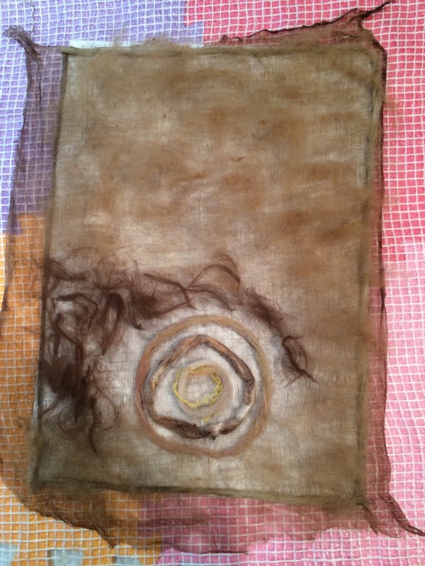 Валя, кружочки выкладывала сразу на шелк, марля жгутиком, ровница спиралькой, припорошила трошки шерсткой, а уже потом вокруг остальную раскладку.