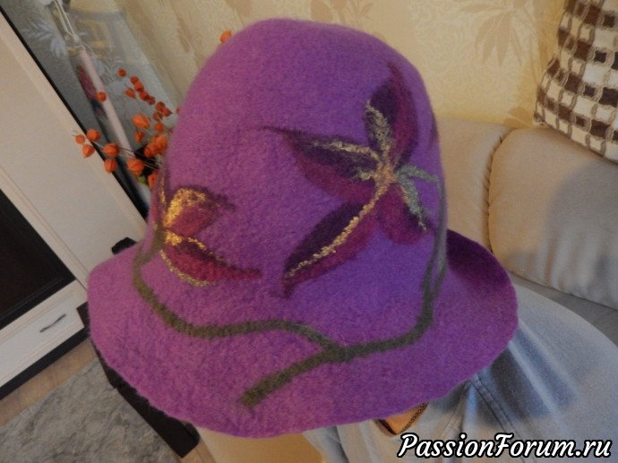 Добрый день девочки форумчане! Выставляю некоторые работы, которые еще не показывала. Сваляла для себя банную шляпку, уже ношу, несколько тапочек и шляпку. После показа моей шляпки цвета слива, мне поступил заказ от форумчанки свалять что-то аналогичное объемное. Таким образом родилась новая шляпка. На тапочках очень хотелось попробовать вышивку в технике "рококо", никогда ранее не вышивала, но вроде получилось неплохо.