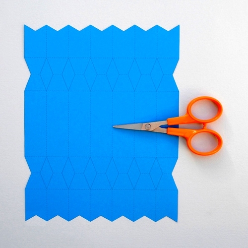 Теперь, используя канцелярский нож, вырежьте все ромбики, которые есть на шаблоне.