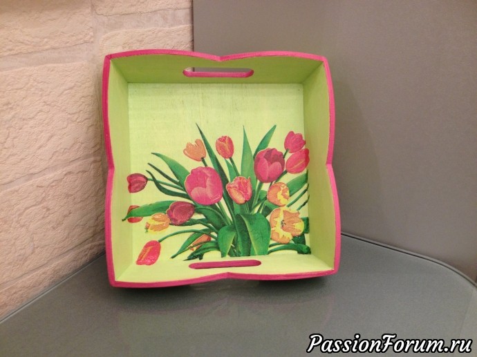 Красные тюльпаны - шёлковые чаши , по весне лазурной нет нежней и краше... Пылают счастьем красные тюльпаны, слегка склонившись аленьким цветком . В огне таком сгорают все печали и улетают с лёгким ветерком... Целый день сегодня романтическое настроение , несмотря на недомогание. Неделю болела, но подарки подругам закончила , ведь такой праздник - 8 Марта ! Вот такие " штучки" у меня получились. Можно использовать для сервировки стола - конфетница, хлебница - кому как вздумается...