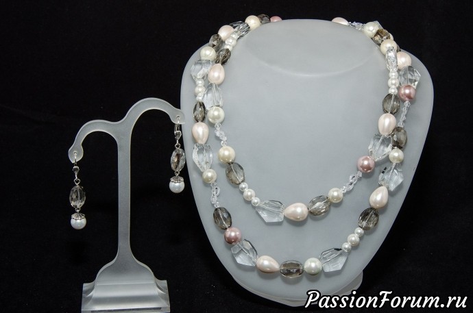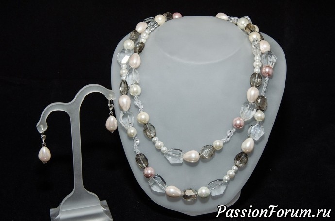 Нарядное колье в две нити и три варианта серёг - восхитительный комплект. Он позволяет по-разному выглядеть, создавая всякий раз новый образ.